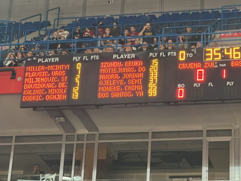 Crvena zvezda: Miler Mekintajer 20, Plavšić , Nedeljković, Davidovac 2, Kalinić 12, Dobrić 4, Izundu, Motiejunas 8, Nvora 19, Odželej, Moneke 12 (8sk), Dos Santos 10.