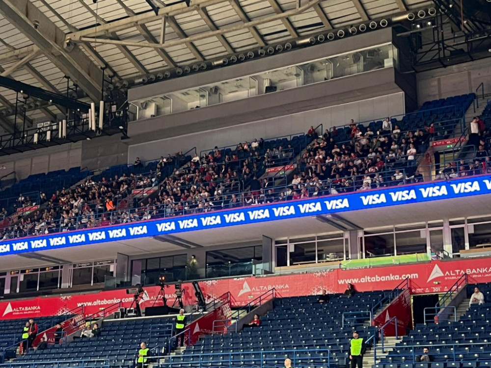 Naravno, nije se očekivala puna Arena dva i po sata pred početak utakmice, ali se u dvorani nalazi impresivan broj navijača. Oko hiljadu ljudi već je zauzelo svoje mesto i pomno posmatra izabranike trenera Vladana Milojevića u Bragi.