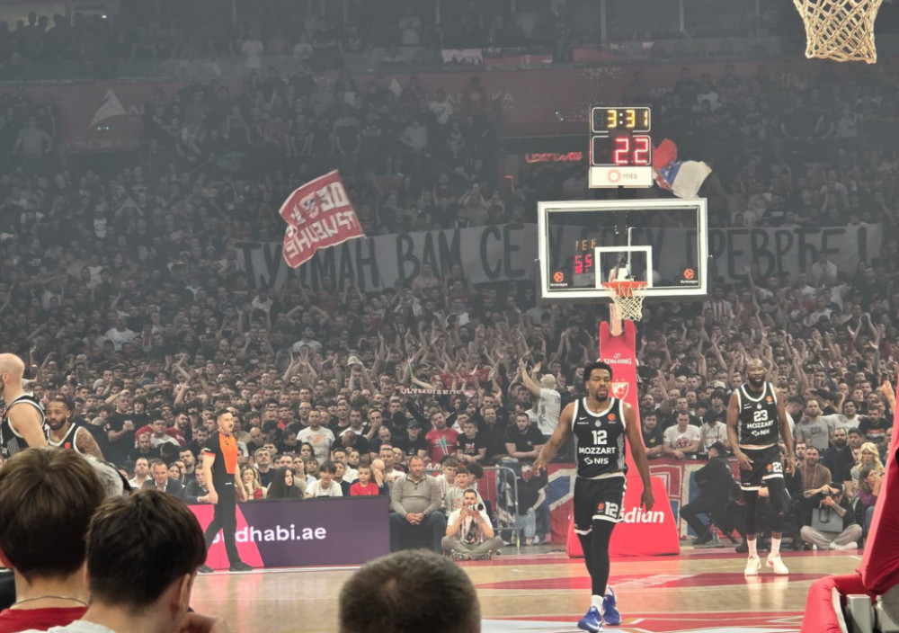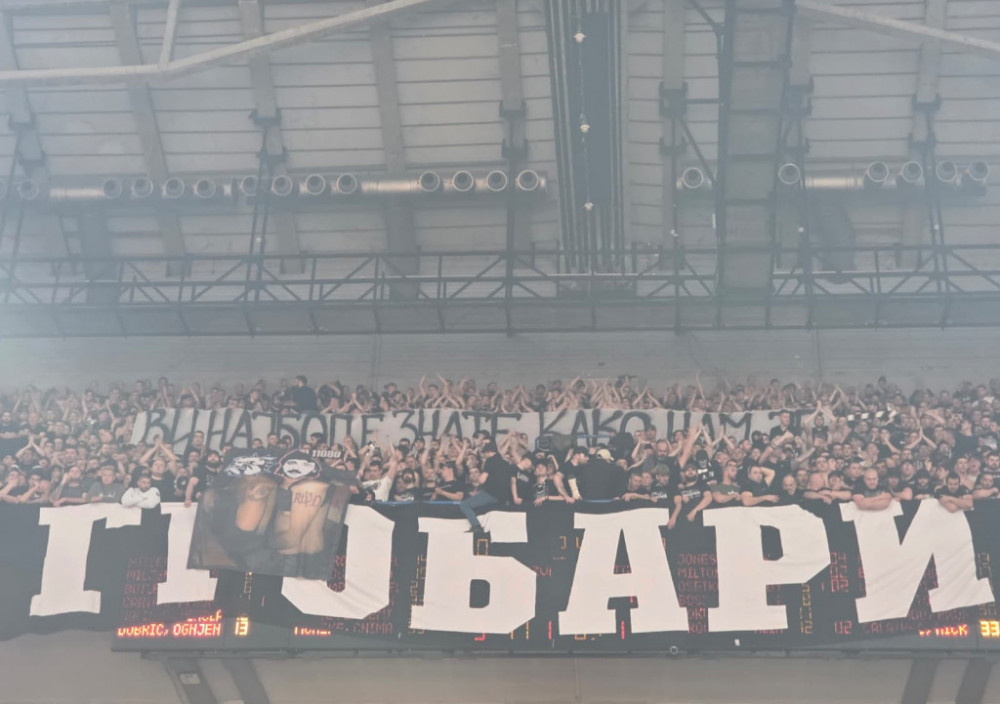 Rat je na parketu "Beogradske arene", a rat je i na tribinama. "Večiti derbi" igra se u okviru 35. kola Evrolige, ulog je ogroman za Crvenu zvezdu, gotovo nepostojeći za Partizan, ali navijačima je to potpuno nevažno. Zna se koliki značaj i za jedne i za druge ima ovaj meč, a u skladu s tim "sevaju" i provokativni transparenti na tribinama.