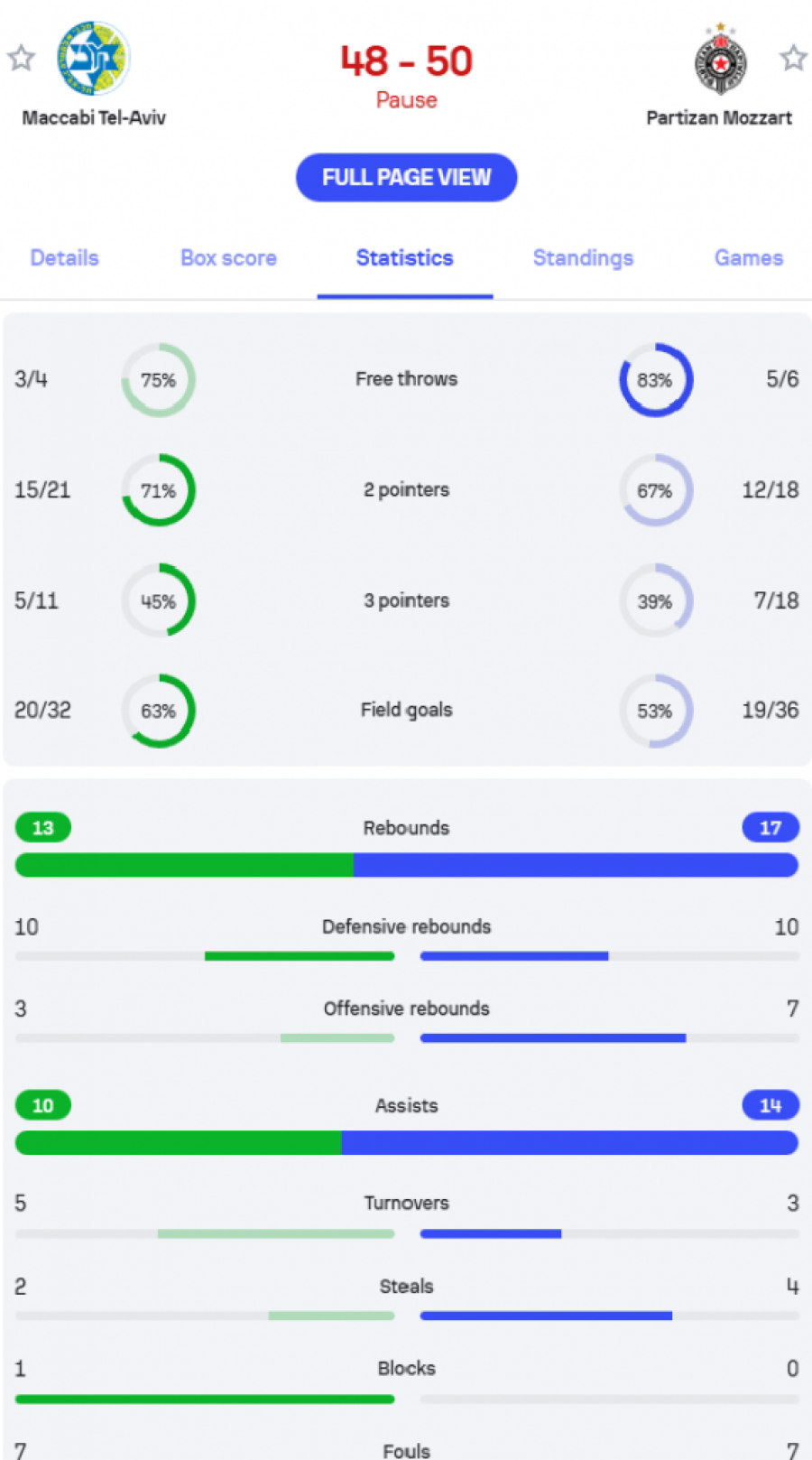 Rezultat na poluvremenu utakmice 26. kola Evrolige u Tel Avivu@MaccabiTLVBC 4️⃣8️⃣ - 5️⃣0️⃣ #KKPartizan