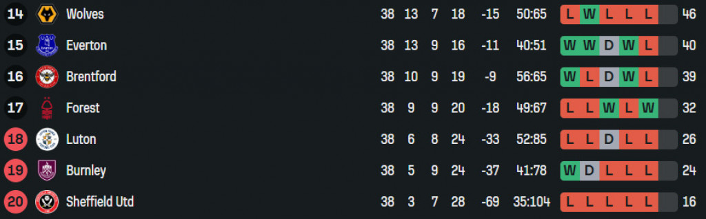 U prethodne dve sezone Prmijer lige, klubovi koji su takmičenja završavali upravo na navedenom mestu, već naredne sezone su u okviru Čempionšipa pružali još lošije partije koje su ih odvele u Ligu 1, treći stepen engleskog klupskog fudbala.
