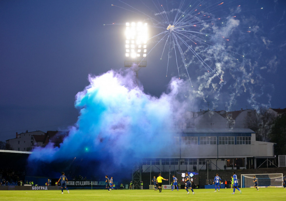Mučenje lopte na terenu, olakšala je pesma sa tribine i pravi šou koji su priredili najvatreniji "romantičari" iz poznate grupe "Plave unije". Niz bakljada, vatrometa, plavo-belog dima i čuvenih pesama koje se već dve godine nisu čule na dopropoznatom brdu. Bila je ekipa sa Karaburme dominantniji tim, sa posedom lopte za koji je većinski zaslužan Edmond Ado, pokazavši još jednom o kakvom se tehnički talentovanom, a fizički i te kako zrelom igraču radi.