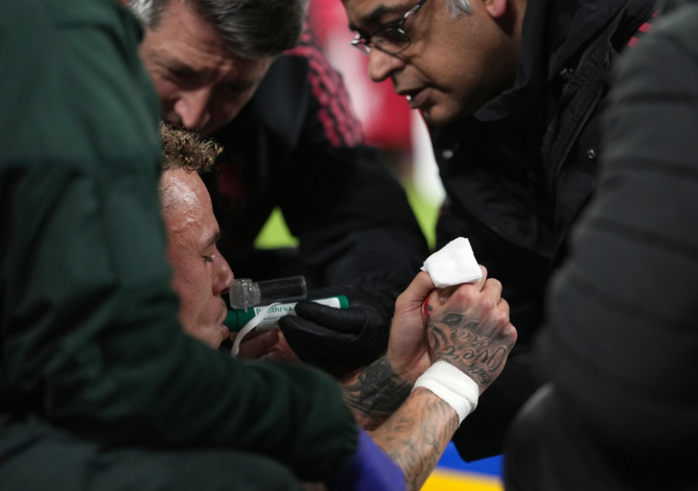 Najveći i nabizarniji peh doživelo je krilo ekipe Okana Buruka - Noa Lang. Igrao se 80. minut i sve je već odavno bilo gotovo, kada je Holanđanin u trku udario u reklamni pano. Bezazleno na prvi pogled, ali ne i na drugi pošto se Lang istog momenta uhvatio za ruku, pao na zemlju i krenuo da se previja od bolova. Prišao je Liverpulov trojac igrača da pomogne pre nego što je sudija uvideo da je reč o ozbiljnoj povredi i dao signal lekarskoj ekipi da ekspresno reaguje.