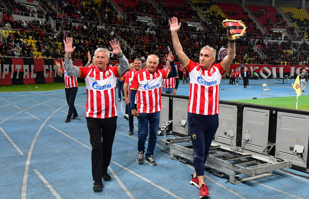 Na poluvremenu utakmice ovacije gledalaca dobili su veterani Vardara i Crvene zvezde. Sa jedne strane Kočo Dimitrovski, legenda Vardara i ostali poznati igrači ovog kluba, sa druge Boško Đurovski, Vladimir Petrović, Cvijetin Blagojević, Dragi Kanatlarovski, Žarko Đurović u dresovima svojim timova, da bio na kraju u odelu ušao legenda oba kluba Ilija Najdoski.