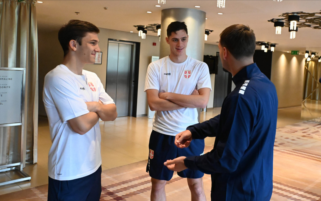 Nedeljković je posetio mlade reprezentativce i poželeo im sreću, a selektor Mirković mu je uzvratio lepim rečima i poželeo brz i uspešan oporavak.