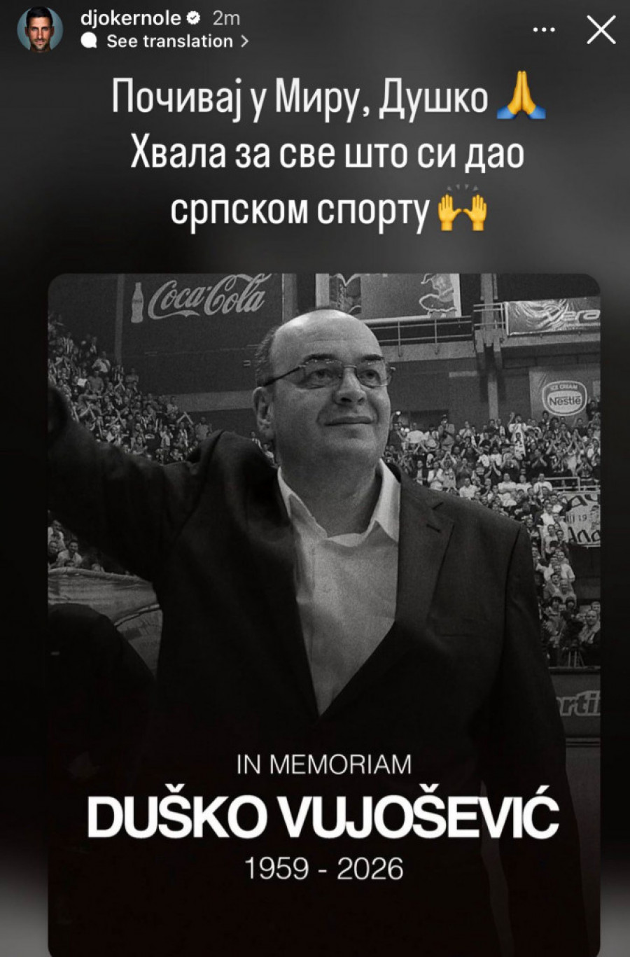 Među onima koji su se oprostili od proslavljenog trenera je i najbolji srpski teniser Novak Đoković. On je na Instagramu podelio fotografiju Vujoševića uz kratku i emotivnu poruku.