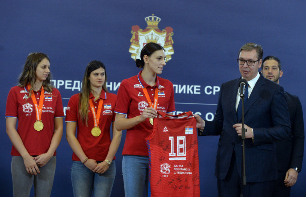 Ona je poklonila predsedniku Vučiću dres reprezentacije sa potpisima svih igračica.