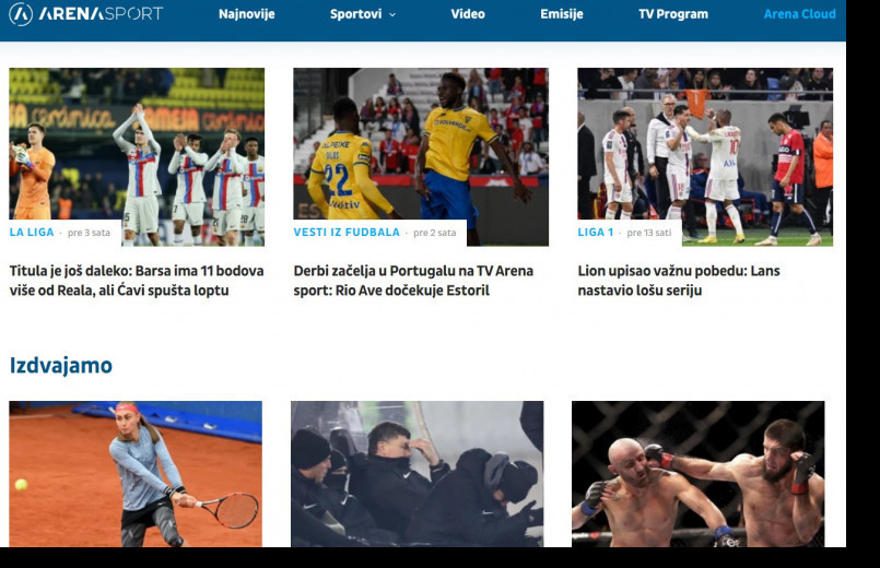 Pored svakodnevne podrške bogatom sadržaju na kanalima TV Arena sport, nudimo vam i praćenje najvažnijih sportskih vesti iz zemlje i inostranstva.