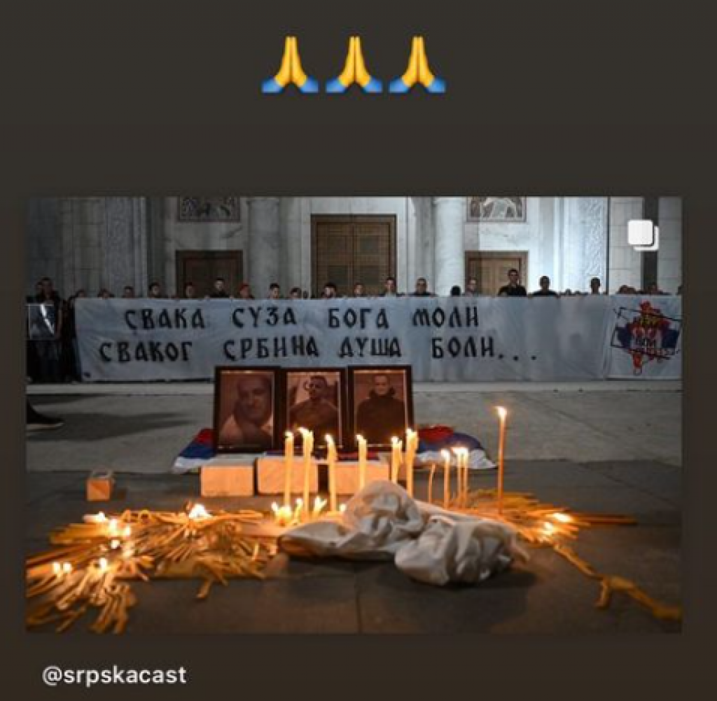 Srpski teniser stavio je tri emotikona ruku koje se mole iznad fotografije transparenta na kom piše: "Svaka suza Boga moli, Svakog Srbina duša boli".